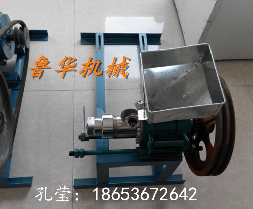 本产品操作简便,使用方便,采用单螺杆挤压、高温膨化的独特工艺,(本机为逆时针旋转)开机前先预备二两湿玉米,(浸泡三分钟)再把前出料口涂上食用油,为的是好出料,把刀子对