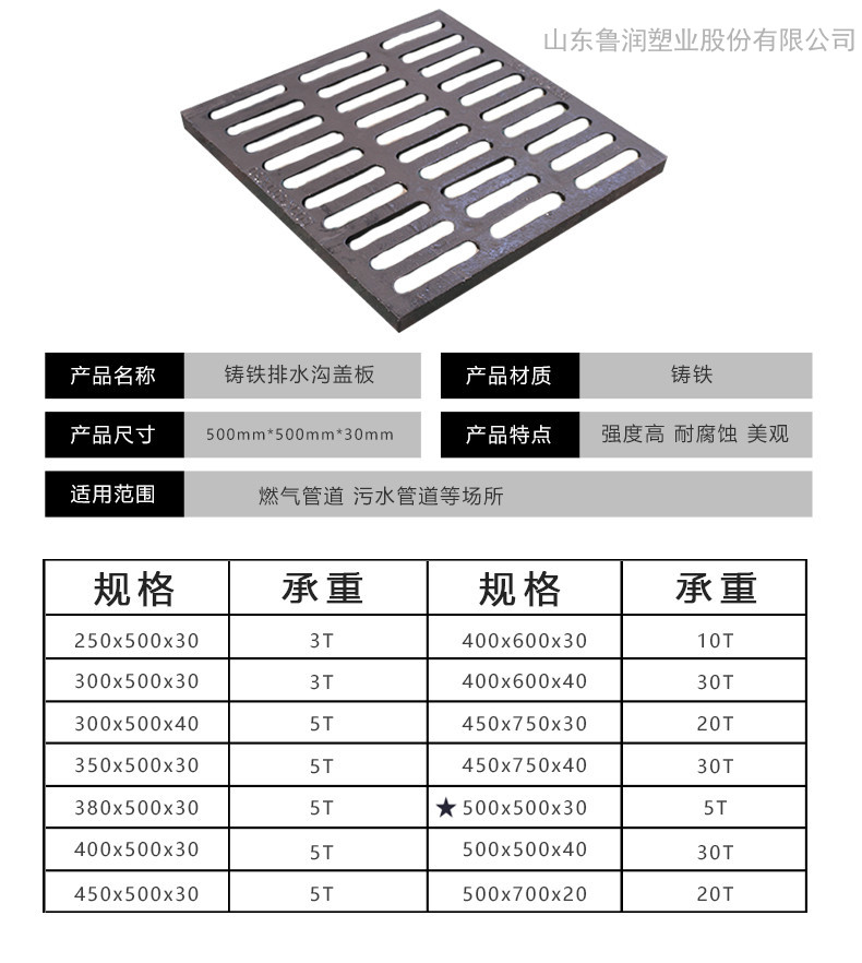 岳峰牌球墨铸铁雨水篦子雨水井盖 500x500