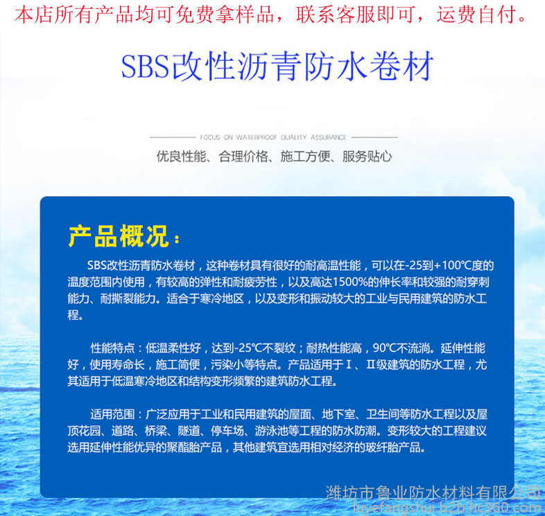 SBS改性沥青防水卷材施工方法简单,适合民用,厂房等防水用途。