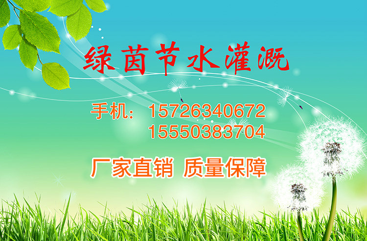 莱芜绿茵节水灌溉器材有限公司位于莱芜市经济开发区,是一家节水灌溉行业的专业公司。公司主要产品有:内镶式滴灌管、滴灌带、压力补偿式滴头、喷头、稳流器等各种灌水器材及过滤器、变频器、过滤施肥器、射频管理设备,并配套生产各种规格PVC、PE管材、管件真诚的为广大用户进行全程服务,承接大田作物、果树、花卉、苗圃、及草坪和大棚,温室的喷灌、微灌、滴管和管灌等工程的设计和施工,提供各种配套设备和技术服务并现场安装。莱芜绿茵节水灌溉器材有限公司秉承“顾客至上,锐意进取”的经营理念,坚持“客户至上”的原则为广大客户提供**的服务。公司愿以先进的技术**的产品,优惠的价格,满意的服务,期待与您真诚的合作,共创我国节水灌溉事业的美好未来! 莱芜绿茵节水灌溉器材有限公司欢迎广大客户惠顾,莅临指导工作。