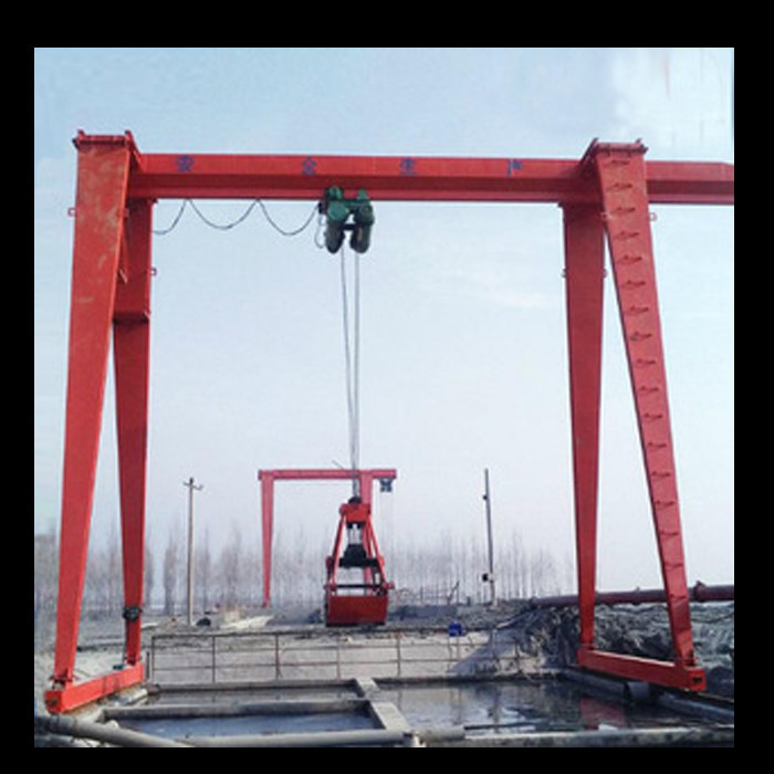 它的金属结构像门形框架,承载主梁下安装两条支脚,可以直接在地面的轨道上行走,主梁两端可以具有外伸悬臂梁。