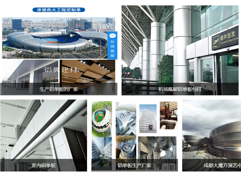 | 用途 | 建筑内外墙、吊顶、门头、雨棚、广告牌、异形吊顶、大堂门面、电梯、柱饰、高架走廊、人行天桥 |