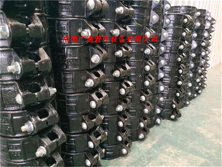 煤矿KRH型卡箍管接头的工作原理:该管接头的胶圈密封设计采用了双唇自紧式,自身具有弹性;胶圈内面紧贴管端的密封面,并与管接头的外卡内腔相符合,随着两边外卡的锁紧,它使其管道密封。胶圈对管道内压力起到发作用力,随着内压的增加胶圈和封闭表面的贴力也立即增加,其密封作用也增强,终形成多重密封。在密封胶圈与外卡形成的紧密性特点,所以管道真空度在一定范围内也保证管线的正常工作。在非正常工作位置处于较大或者较小情况时,管端只能起到单一的伸或缩的作用,失去伸缩兼顾的功能。管接头的连接方式属于柔性连接,有胶圈阻尼,消振效果在补偿的中间位置较为合适,KRH型卡箍管接头能接受稍大的振幅;显然在里或者外间隙位置时候,由于接近刚性接触而消振效果减弱,这种情况可以在紧邻安装两个或以上来增强消振。若管道安装在沉陷地带,支墩下沉管接头**会产生偏转角,因此,在布置此类管道时应预留未来偏转角损失的补偿量,以维持管线在地形变化后的运行。