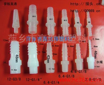 供各类塑料管接头,气体单向阀:应用于制药,分析仪器,点胶设备,医疗仪器,精密机械等领域。规格有(1/16—3/4):直通式,角式,T型三通,Y型三通,四通,F通,E通,4-20通分配器,开关调节阀,浴室用品,卫浴配件,养殖阀二通阀,,变径通,单向阀,调节阀,穿板接头,塑胶配件。主要用于连接硅胶管,PU管,PVC管,特氟龙管,气动设备等。材质:PP,PE,尼龙,POM,ABS等。 耐压8-10公斤