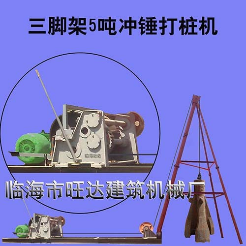 临海旺达专业生产8吨、6吨、5吨、4吨以及3吨等三脚架打桩机,该机型既可以挂冲击锤用于铁路、桥梁及房屋地基桩的施工,又可以使用冲抓钻头进行水库大坝、垃圾发电场等干孔的施工。6吨、5吨和加强5吨的主轴均改为走丝杆结构、操作轻便,齿轮、钢丝滑轮及钢丝绳筒等均采用高**球墨铸铁制造,经久耐磨,质量可靠。 冲抓钻机通过冲抓钻头直接取土的方式完成造孔施工,孔内有水无水并不影响施工,还具有清渣干净、对周围地层影响小等优点,另外碰到岩层还可以卸下冲抓钻头换上冲击锤施工,转换工作非常方便而深受广大用户青睐! 冲锤(击)式打桩机是通过冲击锤打碎岩石,通过泥浆泵往孔内注入清水,以反循环方式经水流将小碎石翻出孔口来完成造孔,另外也可以用捞渣桶方式来清出小碎石,从而完成造孔作业。
