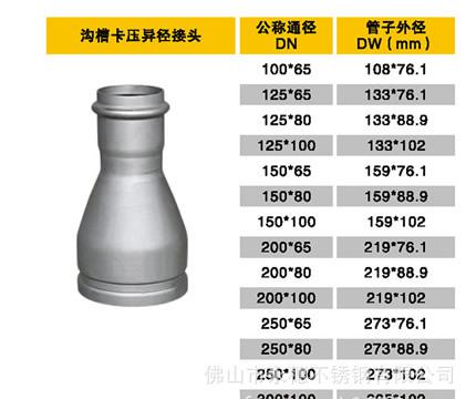沟槽双卡压异径直通|现货批发 可定制直通管件|不锈钢异径直通厂:400-863-6628;0757-29822631