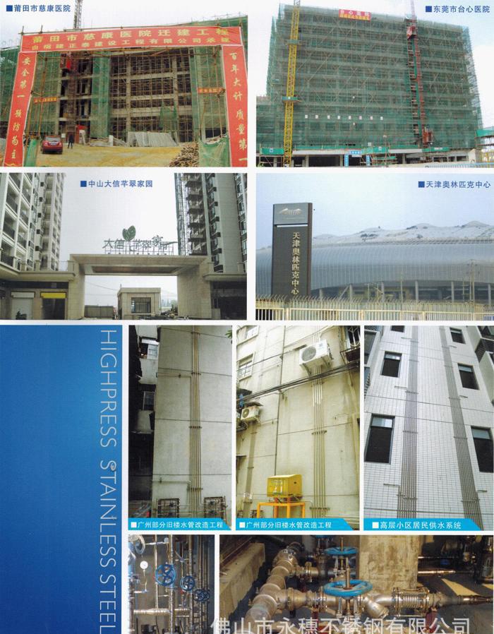 佛山市永穗不锈钢有限公司利用**先进的生产工艺,引进成熟的国外成型技术,自主研发出同行先进的大型成型设备,一次成型,且合格率高达95%以上,有效确保了产品质量和效率,制造出符合卫生级饮用水标准的**不锈钢管材及不锈钢双卡压式管件,产品被广泛应用于冷热水、直饮水、供暖、燃气、食品、制药、医疗气体输送、化工及市政、家装生活用水供水等大型工程项目