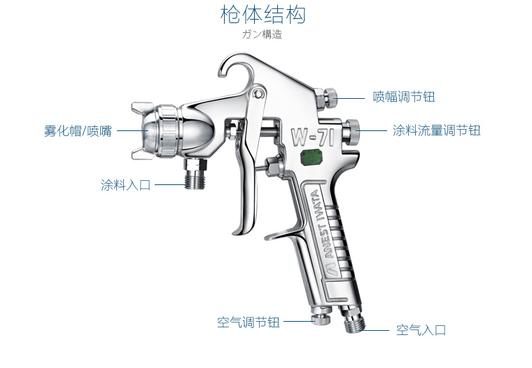 岩田W-71小型手动喷枪:适用于汽车修补喷涂、木工、家具、五金、塑料等喷涂用手动型喷枪
