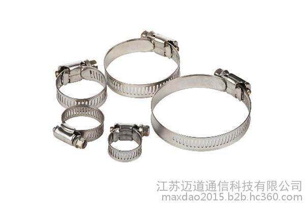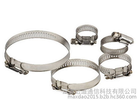 喉箍也称为卡箍。美式不锈钢喉箍:分为小美式喉箍和大美式喉箍,喉箍带宽分别为12.7mm和14.2mm。采用透孔工艺,喉箍适用范围广,抗扭和耐压,喉箍扭转力矩均衡,锁紧牢固,严密,调节范围大,适用于30mm以上的软硬管连接的紧固件,装配后外观美观。特点:蜗杆摩擦力小,适用于中**车型或防腐材料部位连接。