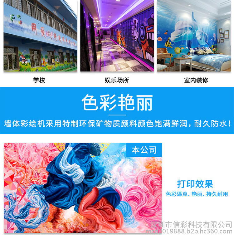 爱普生喷头墙面彩绘机2560墙体3d打印机 户外乡村文化墙彩色喷绘机 背景墙立体激光画画机