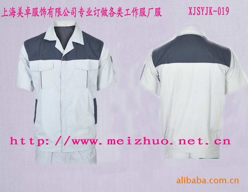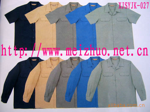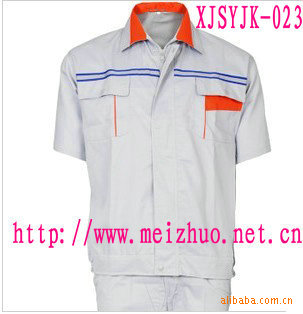 此款是夏季工作服,面料常用65T/35C 32*32 130*70品种。此面料适做短袖茄克套装,具有挺刮,耐磨,吸汗透气等功能。另此品种还有**C 40T/60C **T材质。另夏装还有纱娟,防静电细斜纹**衬衫布,牛津纺,水洗布,T恤用针织布等品种,拥有各种用途及功能的面料,欢迎来电咨询!