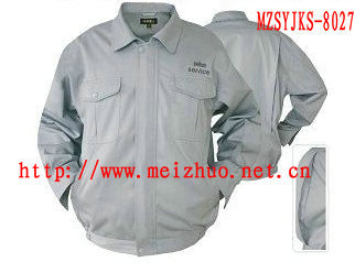 此款长袖夹克工装,为美卓公司2012年**推出,款式在格调上强调实用,穿着大方得体。图中的面料采用42支线卡T/C(65/35),具挺刮耐磨,经久耐用!另面料也可根据客户要求定制如CVC、C/C、T/R类的等。该产品尤其适合用于各类工矿企业、工程环卫等企事业单位作业人员穿着之用!产品无论在面料、辅料及企业绣印标方面均可达到**出口服装之标准。