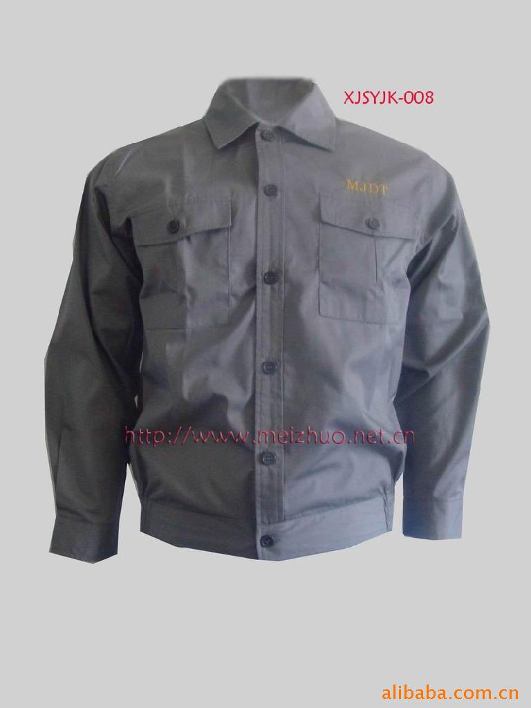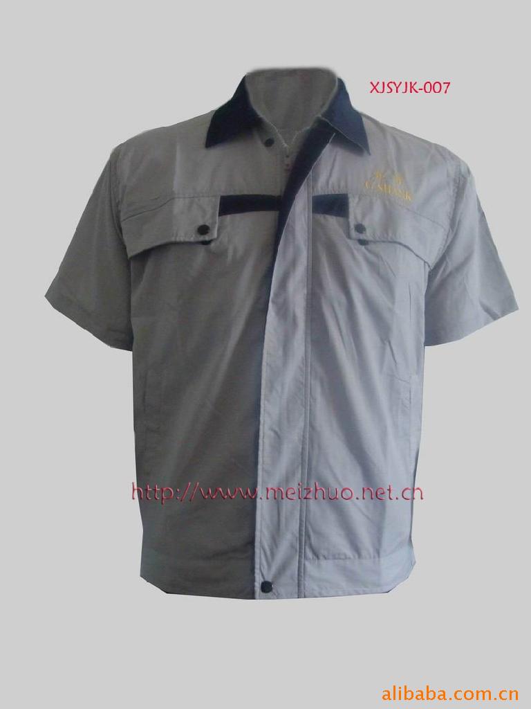 此款是夏季工作服,面料采用全棉纱卡定做而成。此面料吸汗耐高温阻燃不易产生静电等优点,但同时也存在缩水,较深颜色易褪色,不耐磨的缺点,价格相对涤棉要贵一点。
