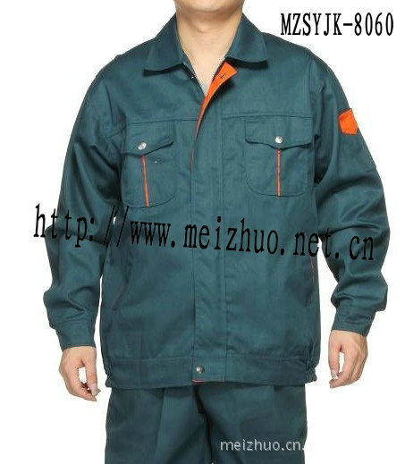 此款长袖夹克工装,为美卓公司2012年**推出,款式在格调上强调实用,穿着大方得体。图中的面料采用42支线卡T/C(65/35),具挺刮耐磨,经久耐用!另面料也可根据客户要求定制如CVC、C/C、T/R类的等。该产品尤其适合用于各类工矿企业、工程环卫等企事业单位作业人员穿着之用!产品无论在面料、辅料及企业绣印标方面均可达到**出口服装之标准。