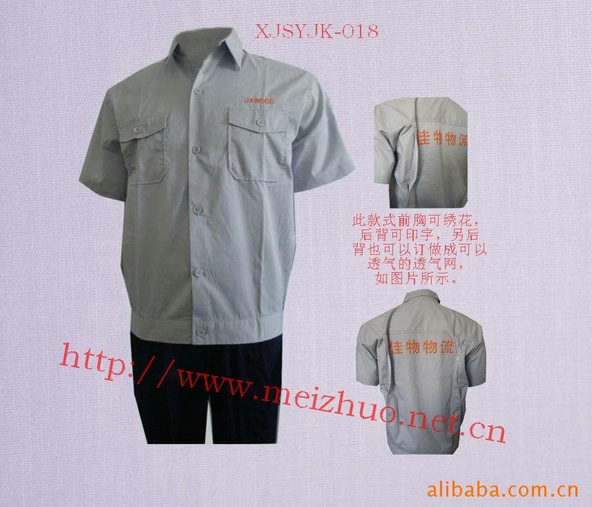 些款是夏季短袖茄克衫.面料可采用细斜纹,纱娟,小米通,衬衫布,涤卡,罗尔呢,牛津纺条子,牛津纺,水洗布等织成。我公司款式新颖,价格保证(面料和数量决定价格),是您企业采购服装的**厂家,欢迎致电本公司咨询!