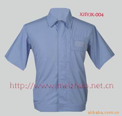 此款是夏季工作服,面料采用32*32 133*72细斜纹面料做成,此面料采用全套仿毛工艺,经减量,罐蒸扎光后,布面结构紧密,结实纹路清晰,布质柔软且悬垂感**经防缩处理后,尺寸稳定,耐磨抗起球,防邹耐洗,是**西装,套装**面料,也是夏季工作服**的料子。具有吸汗透气挺刮之功能!