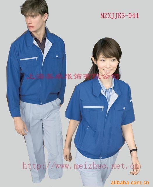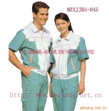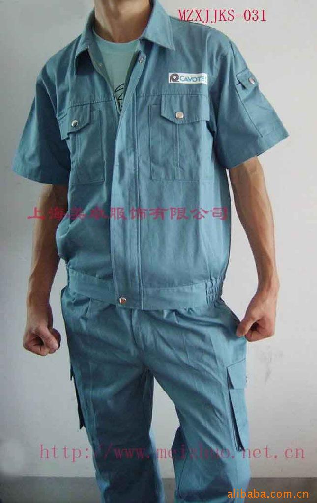 此款是夏季工作服,面料常用65T/35C 32*32 130*70品种。此面料适做短袖茄克套装,具有挺刮,耐磨,吸汗透气等功能。另此品种还有**C 40T/60C **T材质。另夏装还有纱娟,防静电细斜纹**衬衫布,牛津纺,水洗布,T恤用针织布等品种,拥有各种用途及功能的面料,欢迎来电咨询!