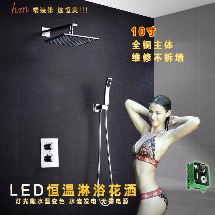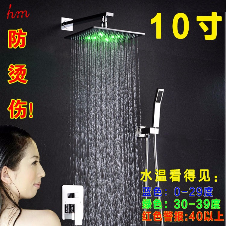 10)不需要电池和电源线,通过多彩的LED灯显示淋浴头水流温度的变化,当水流温