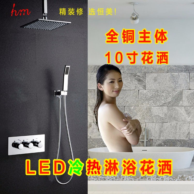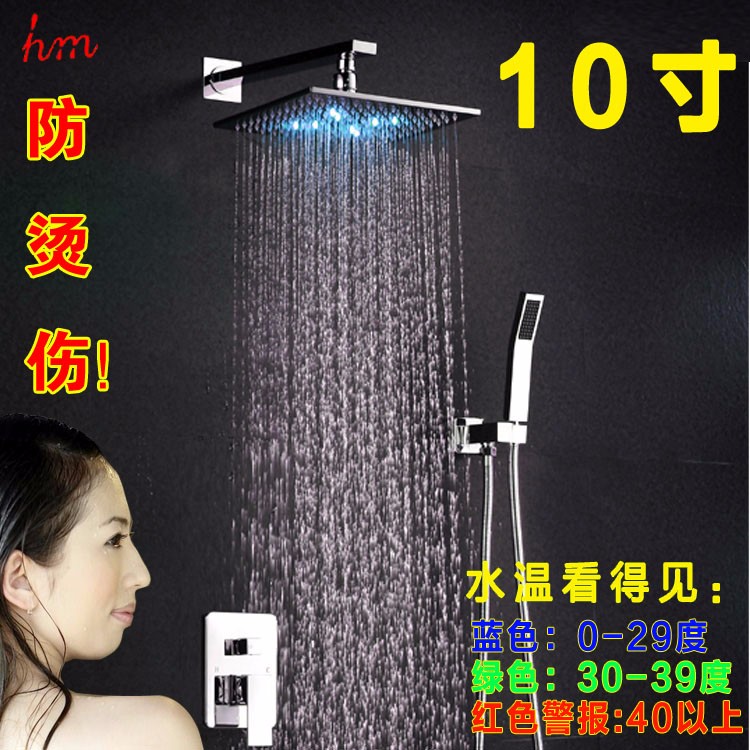 供应,LED顶喷花洒,LED花洒 淋浴暗装花洒 智能恒温淋浴花洒套装全铜增压入墙式LED带灯顶喷头