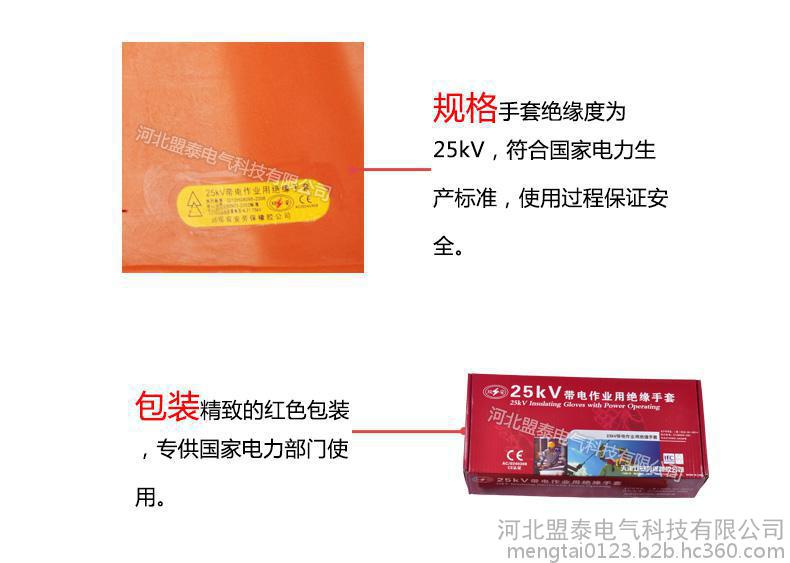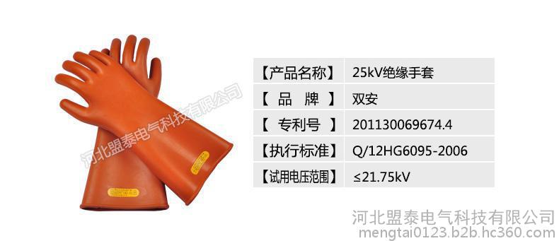 绝缘手套常用规格型号:12KV,25KV,35KV。