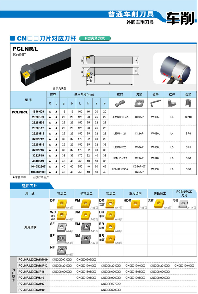 PCLNR/L Kr:95° 刀片对应刀杆: