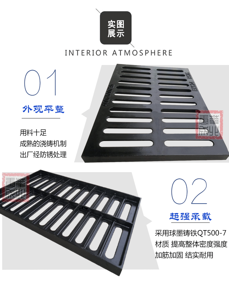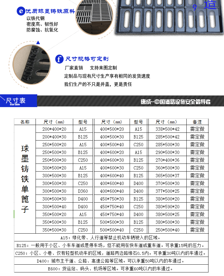 球墨铸铁井盖雨水单篦子排水沟盖板窨井盖厨房盖板400*600*30B125