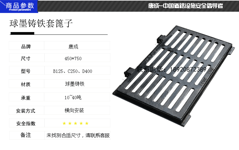 铸铁套篦子雨水收集口井盖雨水篦子井盖盖板窨井盖450*750C250