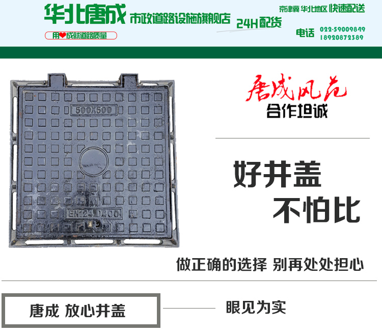 球墨铸铁井盖电力通信方井盖弱电雨水下水道窨井盖400*400B125