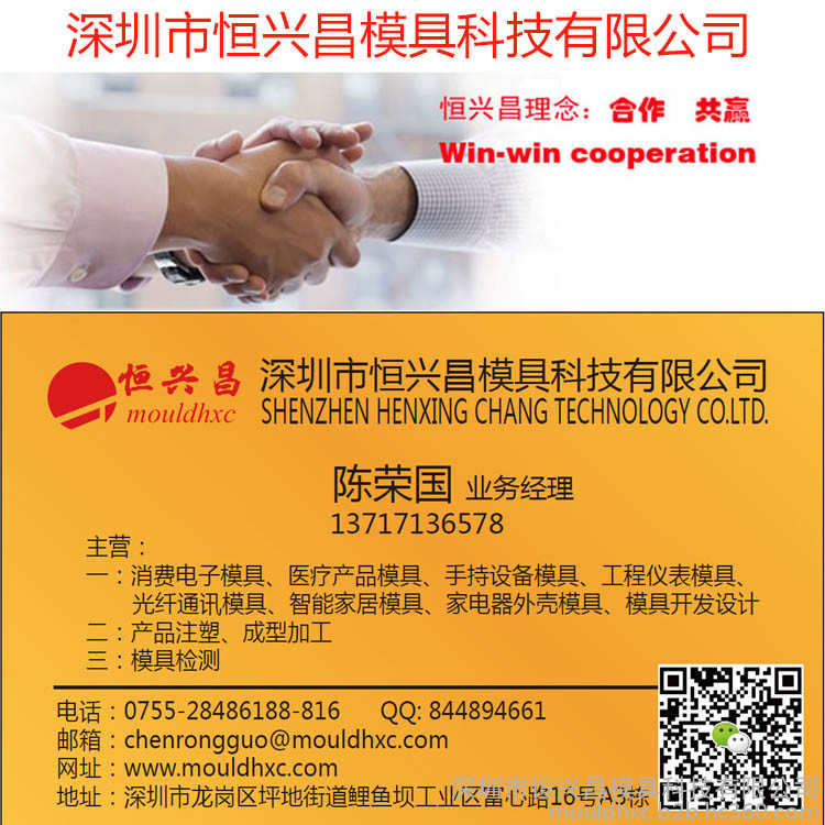 答:恒兴昌在注塑模具及精密注塑成型方面积累20多年经验,获多项发明Patents,诚信经营。等我们做出产品后 你再付钱。