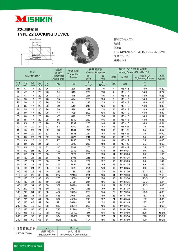 特点:胀紧联结套是当今世界上广泛应用于重型载荷下机械联接的一种先进基础部件。在轮毂和轴的联接中,它是靠拧紧高强度螺栓使包容面间产生压力和摩擦力来传递负载的一种无键联接装置。它是一种经济、高效**的联接方法.型号有Z1、Z2、Z3、Z4、Z5、Z6、Z7、Z8、Z9、Z10~Z20等全部系列供货及时,价格合理