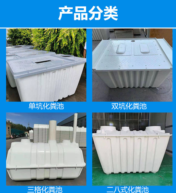 模压化粪池通过模压工艺成型化粪池,采用结构胶粘结或螺栓法兰连接方式。用于生活污水