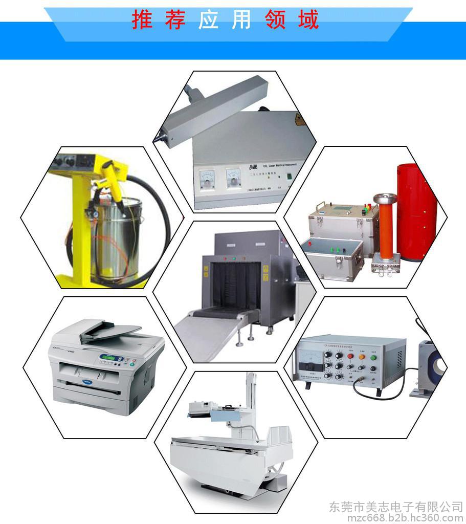 4、静电发生电路,喷涂机械,静电植绒设备,倍压电路等高频倍压整流电路;