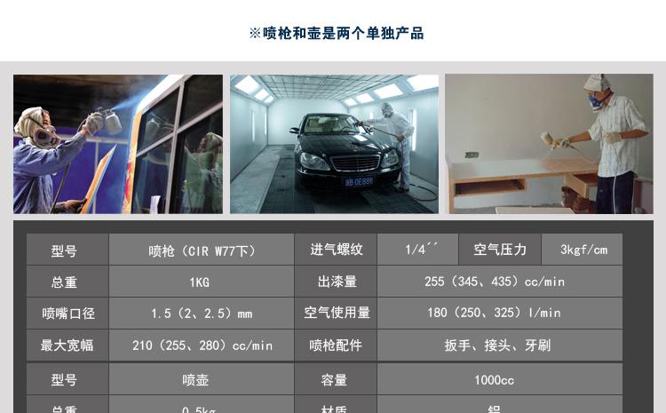 喷枪2.5口径(不含壶) 喷枪2.0口径(不含壶) 1000CC喷壶(不含枪) 喷枪3.0口径(不含壶) 喷枪+壶