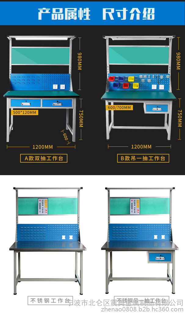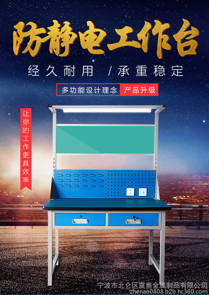 宁波震奥钳工台防静电工作台操作台流水线操作台日光灯检验台维修桌工作桌|可定做工作台