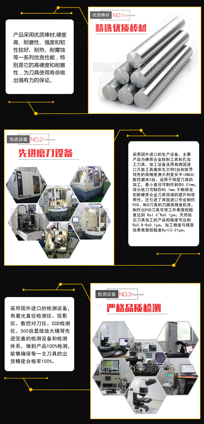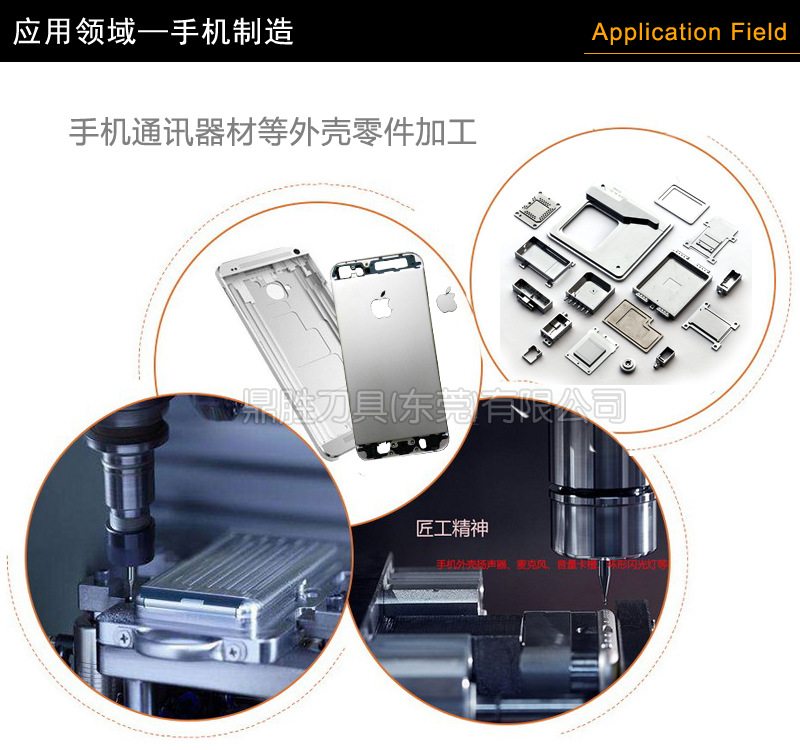 主要用于金、铜、铝、铝合金、不锈钢、PC、亚克力等非黑色金属材料的CNC倒角、铣削加工,刀具尺寸精度高(±0.01mm),加工产品无毛刺且具有刀具寿命长、加工效率高、成本低以及表面光洁度高等优点,用我们鼎胜刀具,为您创造更大增值!是CNC精密加工的选择!