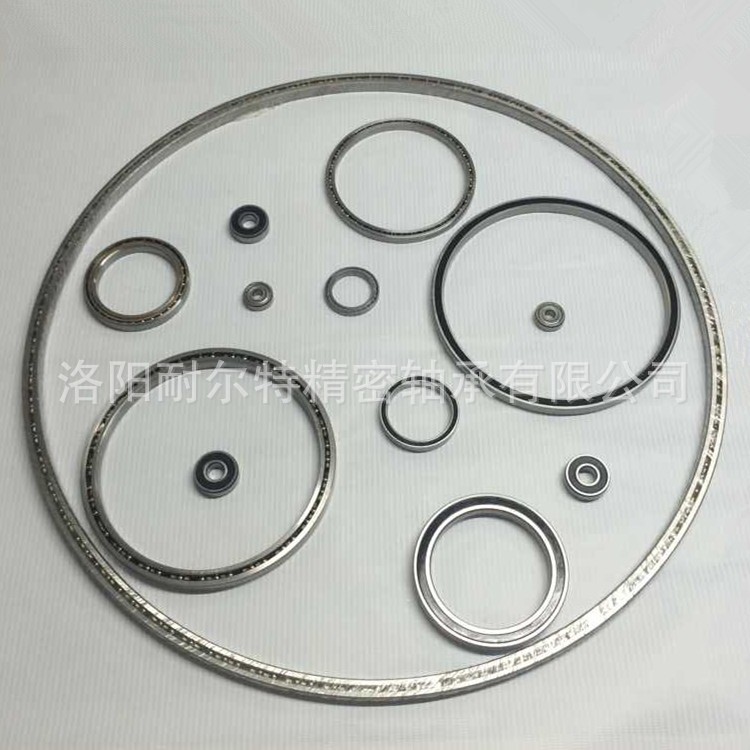 洛阳耐尔特轴承厂加工的薄截面超薄轴承由七个开式系列和五个密封系列组成,内孔直径从1英寸到40英寸,横截面的尺寸范围从0.1875X0.1875英寸到1.000X1.000英寸,三种类型:深沟球型,角接触型,四点接触型,材质有Gcr15和不锈钢两种供选择。替代NTN轴承。KRA系列,KRB系列,KRC系列,KRD系列,KRF系列,KRG系列,KYA系列,KYB系列,KYC系列,KYD系列,KYF系列,KYG系列,KXA系列,KXB系列,KXC系列,KXD系列,KXF系列,KXG系列,JACP0系列,JBCP0系列,KRJ系列,JGCP0系列,JAXP0系列,JBXP0系列,JGXP0系列等。替代KAYDON轴承。KACP0系列;KBCP0系列;KCCP0系列;KDCP0系列;KFCP0系列;KGCP0系列;KAAR0系列;KBAR0系列;KCAR0系列;KDAR0系列;KFAR0系列;KGAR0系列;KAXP0系列;KBXP0系列;KCXP0系列;KDXP0系列;KFXP0系列;KGXP0系列;JACP0系列;JBCP0系列;JUCP0系列;JGCP0系列;JAXP0系列;JBXP0系列;JGXP0系列;JUXP0系列。替代INA轴承。 CSCAA..-TN系列;CSCA系列,CSCB系列;CSCC系列;CSCU系列;CSCD系列;CSCF系列;CSCG系列;CSXAA..-TN系列;CSXA系列;CSXB系列;CSXC系列;CSXU系列;CSXD系列;CSXF系列;CSXG系列;CSEAA..-TN系列;CSEA系列;CSEB系列;CSEC系列;CSED系列;CSEF系列;CSEG系列等。也可根据客户具体要求设计加工精密非标薄壁轴承。欢迎新老用户来电垂询!