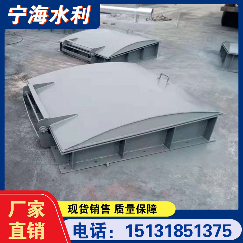 拍门主要由:阀座、阀板、密土封圈、铰链四部分构成。性状分为圆形和方形。拍门的材质传统上为各种金属制品,现在已经发展为多种复合材料。产品属性当前随着新材料科技的发展,有了复合材料拍门,如玻璃钢、高密度聚乙烯等。复合材料拍门将是将来拍门的发展方向,复合材料拍门本身利用了新材料科技的可塑造特点,强度高,密度小,正是传统拍门材料的弊端。新材质的拍门重量轻,开启迅速,水头损失小,其价格也具有优势,而且一般无回收价值而使防盗性能好。功能用途由阀座(阀体)、阀板、密封圈、铰链四部分构成。仅用于单向水流的圆形和方形出水口,结构严密,工作可靠,无需人力操作启闭力来自水源压力,当拍门内的水压大于拍门外侧压力则开启材质分为不锈钢、铸铁、型钢、复合材料(玻璃钢)等多种材料。而拍门又分为很多种,比如,浮箱式拍门,平板式拍门,套筒式拍门