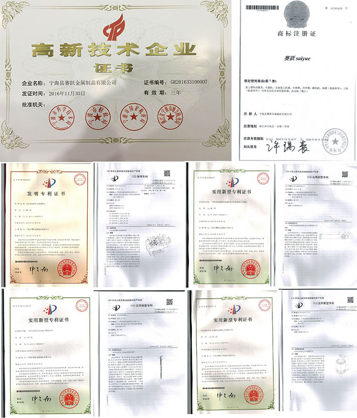 赛跃公司拥有硬度检测,拉伸力学试验,光谱化学分析,X光探伤检测,三坐标检测,投影检测等检测设备。从技术研发中心,产品制造,理化实验室,各种检验检测中心到质量控制,量化分析都一丝不苟;从原料到生产,从毛坯到成品都拥有完善的质量管控体系,有效的保证成品的优良品质,赢得了海内外客商的一直好评.目前我公司已成为SIRA,AZARABAN,OASIS,TENRAD,FLYHIGH,GREENING ,NICSUN等国内外知名企业长期的合作伙伴。赛跃人,通过不断的创新,总结和完善,得到了快速的发展,得到了设备各界的肯定,拥有:浙江铭牌,高新技术企业,重点技术骨干企业**供应商等诸多荣誉称号。