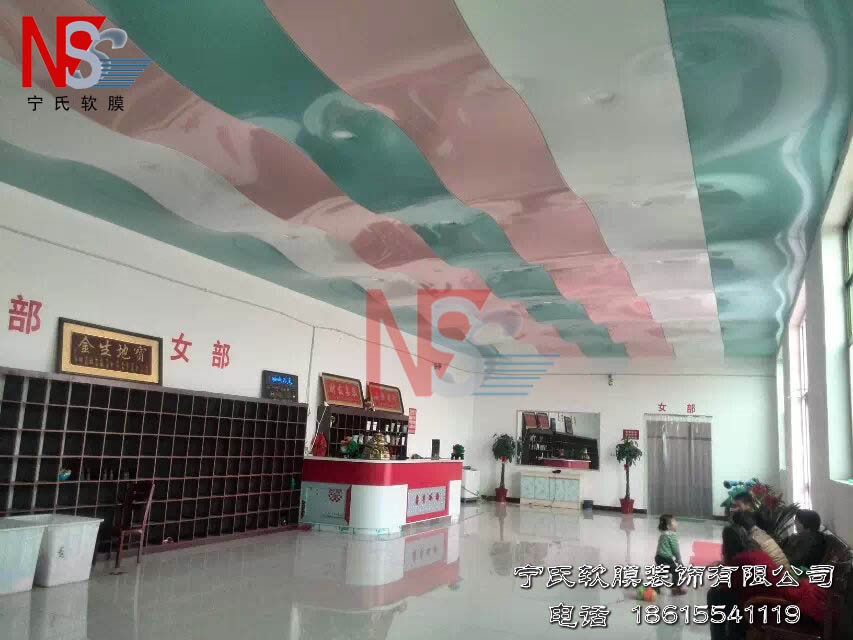 优异的抗老化功能:宁氏软膜天花的软膜和扣边经过特殊抗老化处理,龙骨为铝合金制成,使用寿命均在十年以上。十年之内非人为的破损,变形,变色,我们免费更换天花。