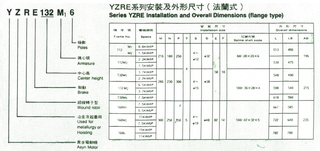 | 型号 | YZRE 132M3-4 7.5KW |