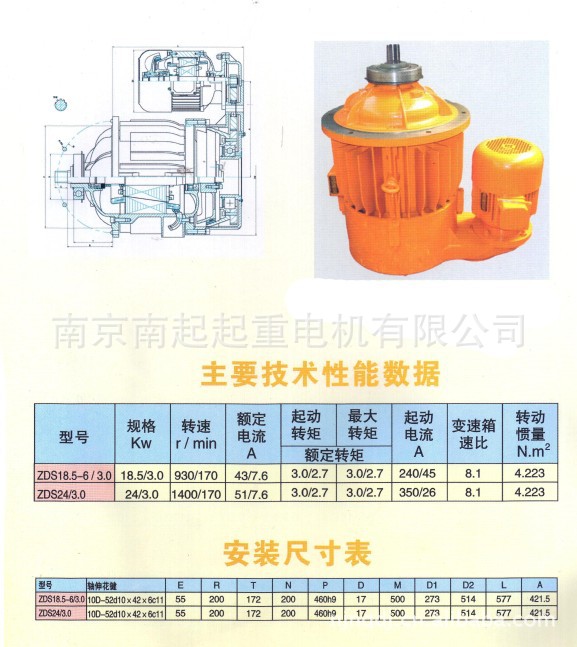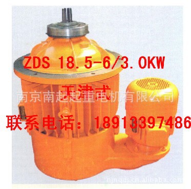 ZDS 双速子母电机是由两台锥子转子三相异步电动机通过中间慢速驱动装置联接起来的一种复合电动机。其中大功率的一台为主机(母机),另一台小功率为辅机(子机),具有快慢两种速度。本系列电机为卧式电动机,机座不带底脚,采用圆锥制动器,可频繁起动。