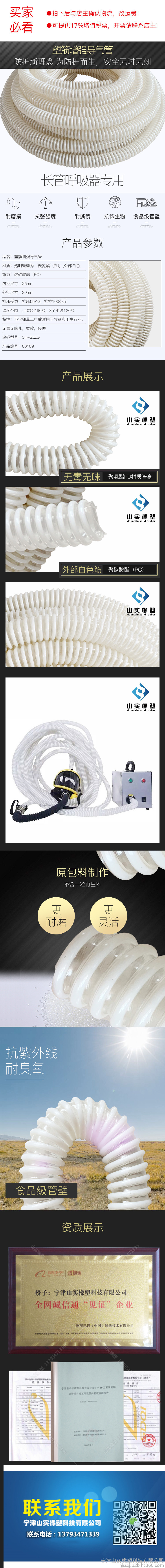 山实 聚氨酯PU塑筋管 无创呼吸管路防毒面具专用管厂家直供