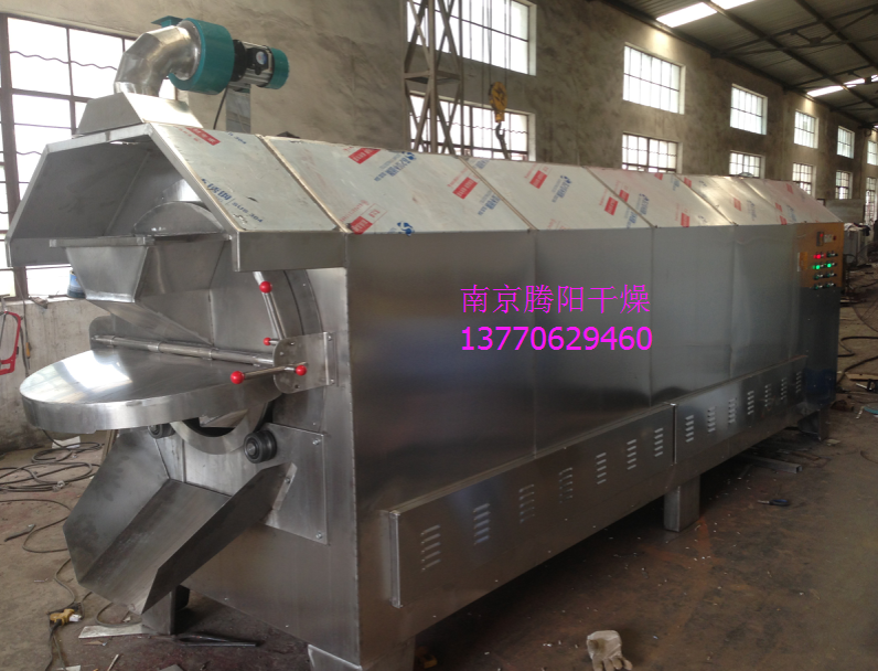 2、 筒体用铸钢和钢板或不锈钢板卷制而成,筒体正方向旋转时使药、物料反复翻炒,筒体可正、反速转动、正转炒、反转时出料。