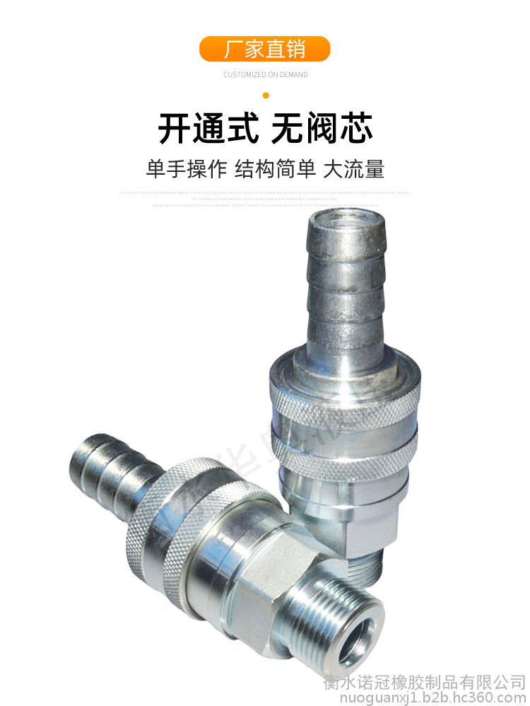 诺冠QKD-T气动快换接头 DN25开放式直通快速接头大流量铝厂专用配件气动接头