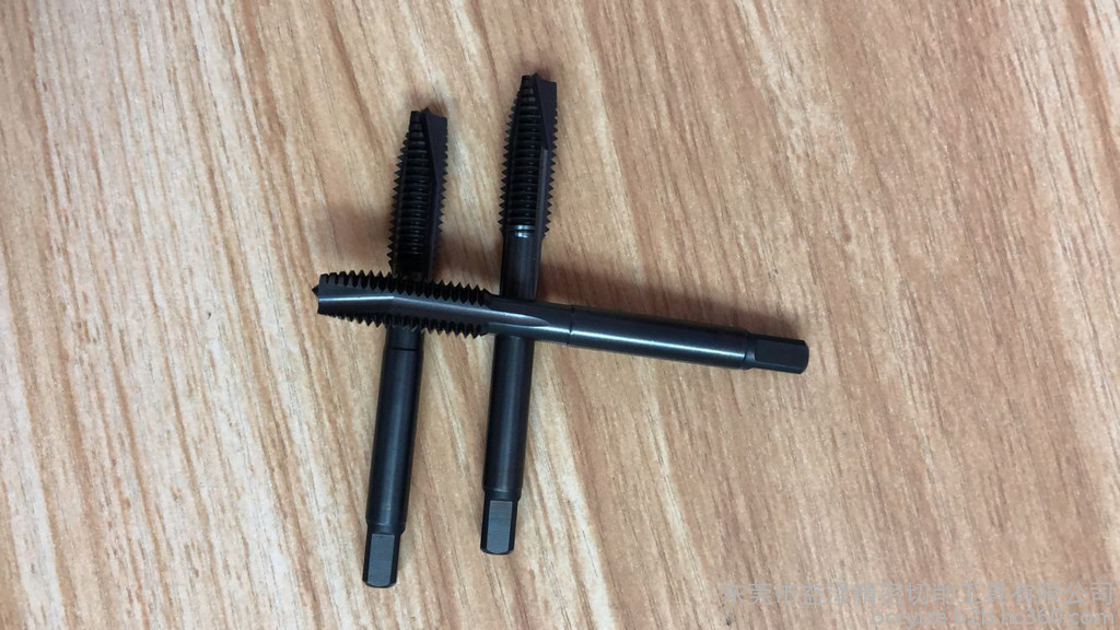 对通孔切削的攻牙作业,先端丝攻将发挥其很好的切削效果,迅速、顺利地为您切削出****的螺纹,先端丝攻具有一般手用丝攻相同的直线沟槽,但在其切削部前端有经特殊设计的螺旋沟槽,籍以旋转推送切屑从孔的下方排出,由于先端丝攻具有旋转排出切屑的功能,除可保持沟槽的清洁从而减少切削时的抗力外,并能避免切削堵塞而造成丝攻的损害,因此先端丝攻可采用比一般的手用丝攻更快速度来切削高精密的螺纹。