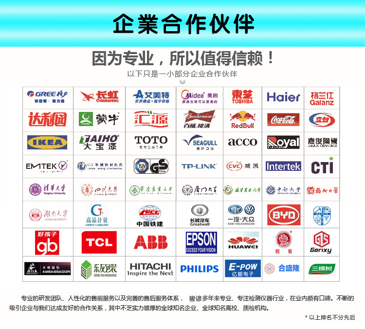 主要适用于各种金属和非金属材料的拉伸、压缩、弯曲、剪切、剥离、撕裂等的力学性能测试分析研究,具有应力、应变、位移三种闭环控制方式,可求出最大载荷、抗拉强度、弯曲强度、压缩强度、剪切强度、弹性模量、断裂延伸率、屈服强度等参数。根据国家标准及ISO、JIS、ASTM、DIN等国际标准进行试验和提供数据;