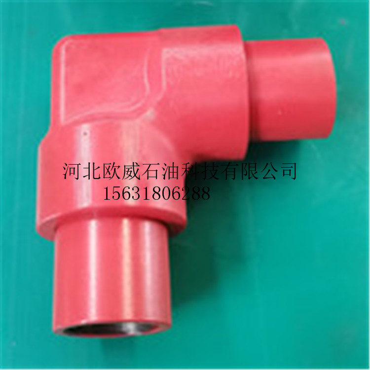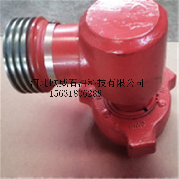 高压活动弯头是一种装有滚珠轴承的金属管线接头,是油田修井作业连接管线、冲砂常用的工具,它具有调节方位多变,连接快捷、结构合理、体积小、重量轻、密封性能好,安全可靠,操作方便的特点,其规格有2"~3",额定工作压力42MPa~105MPa(2000psi~15000psi)