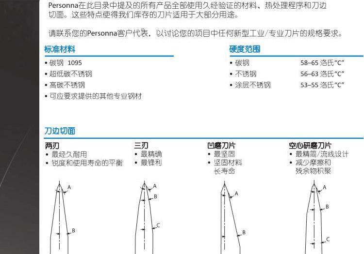 美国Personna公司有生产各种形状和刃口条件的经验和能力。在过去的100多年中,我们和许多财富1000的企业合作发展刀片处理工业改革。