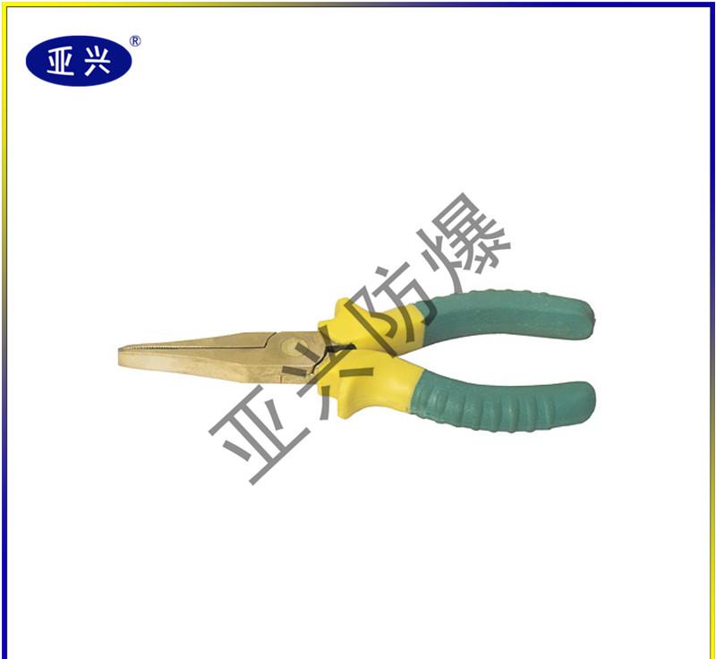 防爆扁嘴钳详细介绍防爆扁嘴钳材质为:铍青铜、铝青铜合金两种,其中铍青铜材质的工作面硬度HRC35°以上,抗拉强度δ b>105-120kgf/mm2;铝青铜材质的工作面硬度HRC25°以上,抗拉强度δ b> 75-85kgf/mm2;防爆性能符合**GB10686-89标准。防爆扁嘴钳说的用途为石油、石化、天然气、煤矿等易燃易爆场所操作维修中钳工的专用辅助型防爆工具,用于较狭小的工作空间操作,能剪切细小零件或金属丝等。 防爆扁嘴钳子的型号6mm中渤重工生产的防爆工具包括以下几大类:一、防爆手拉葫芦、防爆滑车、防爆台虎钳、防爆套筒及附件类二、各种防爆扳手、防爆管钳类,如防爆梅花呆扳手、防爆敲击扳手三、防爆锤子类,如防爆八角锤、防爆奶头锤、防爆榔头四、防爆泥子刀、防爆除锈刀、防爆扁铲类、防爆挫类五、防爆撬棍类六、防爆钳子、防爆剪刀类,如防爆克丝钳、防爆鲤鱼钳七、防爆螺丝刀类防爆**、防爆听针类八、防爆提油泵、防爆水桶、防爆拉马等杂品九、防爆组合套装工具类. 防爆工具的原料:防爆工具材质以铍青铜和铝青铜为原料,铍青铜合金、铝青铜合金在撞击或磨擦时不发生火花,十分适合用来制造在易爆、易燃、强磁及腐蚀性场合下使用的安全工具。 BeA-20C合金在含30%的氧或6.5-10%甲烷空氧中承受561IJ的冲击能,冲击20次,都未发生火花和燃烧。 适用范围:石油精炼和石油化学工业、煤矿、油田、天然气化学工业**工业、化纤工业、油漆工业、肥料工业、各种药品工业。石油轮和液化石油气的车辆、飞机、经营易燃易爆品的仓库、电解车间、通讯机装配车间、要求工具不生锈、耐磨抗磁的场所等。 铝铜合金防爆工具是用贵重稀有金属合成、熔炼、锻造而制成工具后,表面呈黄色。工作面硬度HRC25°以上,抗拉强度δ b> 75-85kgf/mm,其它技术指标全部达到国外同类产品先进水平。在易燃气体乙烯(浓度7.8%)空间连续使用均确保安全,冲(撞)击、摩擦、落锤均不产生火花**。 防爆工具的使用和维护保养 1、 防爆工具为我们工作在那些易燃易爆和易腐蚀的工作场所的工作人员带来了安全的保障,这使我们的社会安全更加完善,也使我们的工作人员工作得更加放心。 防爆工具在我们的日常工作使用完毕后,应该有一个妥当的维护阶段,对于工具的寿命是有十分关键作用的,因为如果对防爆工具的维护不妥当**有可以使我们的工具不能长久地为我们服务。 首先我们要把工具放在干燥的地方保存,这是为了能使工作的部分部件不要受损。 在我们的日常工作中连续敲击20次后应该对工具的表面附着物进行处理,揩净后再做使用,千万不要连续使用,以免因为长时间地处于摩擦会使工具受热,这样会有可能损坏我们的工具产品。 2、 使用后要揩净表面污秽和积物,放置干燥的安全地方保存。 3、 敲击类工具产品,不可连续打击,超过十次应有适当间歇,同时要及时清除产品部位粘着的碎屑后再继续使用。 4、 扳手类产品不可超力使用,更不能用套管或绑缚其它金属棒料加长力臂,以及用锤敲击(敲击扳手除外)的方法旋纽紧固件之用。 5、 刃口类工具应放在水槽内轻轻接触砂轮进行刃磨,不可用力过猛和接触砂轮时间过长。 6、 在敲砸类工具实际操作中,必须清除现场杂物和工作面腐蚀的氧化物,防止第三者撞击。 根据以上性能及使用,说明在正常使用过程中铝铜合金较适用于常压设备及防爆条件要求不太严格的环境(如加油站、小型油库等)。而铍铜合金防爆工具性能的适用性(如炼油厂、转气站、采气厂、钻井队等)。 7、 各种产品使用前要清除表面油污,按钢制工具参照说明书使用。 包装方式:纸箱,泡棉,编织袋 发货方式:韵达快递、EMS、顺丰、德邦、铁路、配货、车带等等,您可以根据自己需求选择您需要的发货方式。