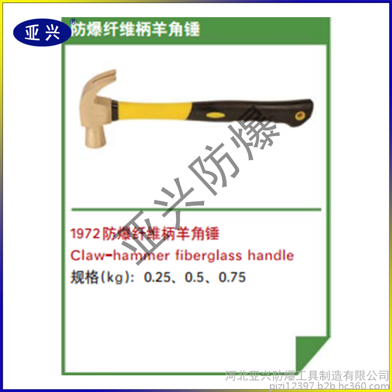 产品说明防爆机械锤,防爆检验锤,防爆羊角锤,防爆除锈锤等多种防爆铜锤。材质:铍青铜和铝青铜两种;。铍青铜在易燃气体氢气(浓度21)空间连续快速